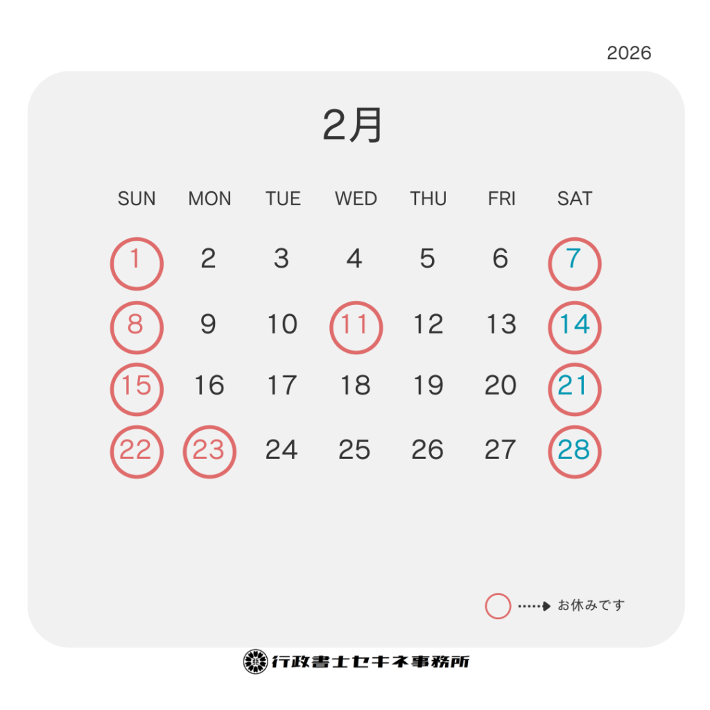 2月の定休日 2026 1/17 お知らせ 2026年1月17日 2026年2月の定休日のご連絡です。 ※定休日でも、ラインやお問い合わせフォームからのご連絡は可能です。 お急ぎの場合にはお電話下さい。 お知らせ よかったらシェアしてね!
